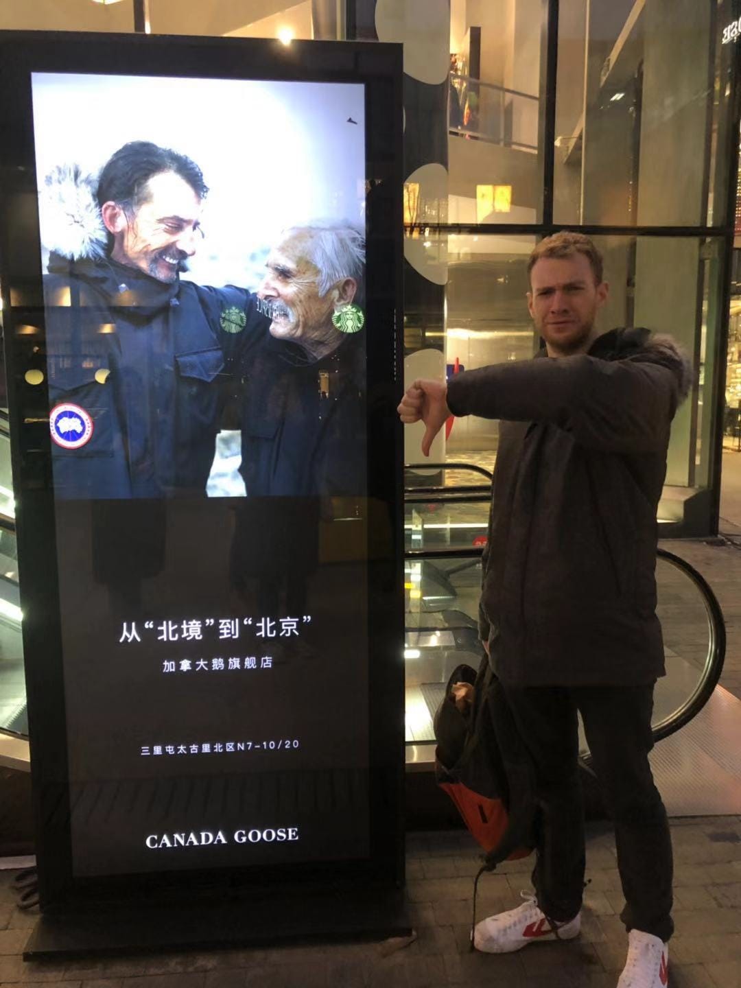 I got to say though that protesting Canada Goose is my preferred method! The ad below is sort of like the Patek Philippe ads about how their coats are all about “from father to son.” Canada Goose’s Tai Koo Li Sanlitun flagship store has postponed its opening. I still see plenty of folks walking around with Canada Goose around Beijing, though.