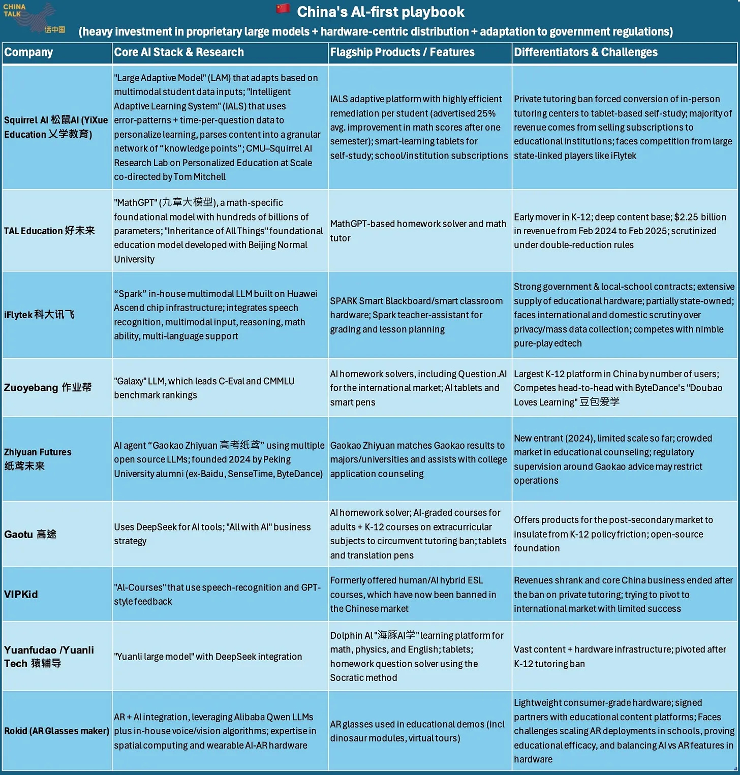 This report explores why the Party wants to integrate AI into education, what applications the MOE is most optimistic about, and where the barriers to successful rollout lie. We’ll limit our analysis to K-12 education today, but university AI initiatives will be the focus of our next report in this series!
