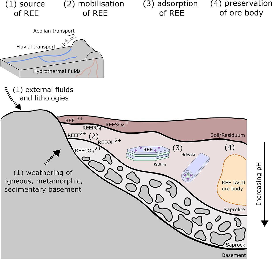 Different concentrations of rare earths tend to occur in different geological and mineral environments. Sites that are disproportionately rich in heavy rare earths tend to be ionic clay deposits. The scientific explanation for why is too long for this article, but in short, Southern China’s topology, geography, and tropical climate proved to be an ideal environment for easily extractable ionic clays to absorb REEs. It’s worth pointing out that these smaller HREE mines are separate from China’s big three (Maoniuping 牦牛坪, Weishan 微山, and Bayan Obo 白云鄂博), which primarily provide LREEs. The southern HREE mines were less regulated, more artisanal, and especially environmentally damaging. The easiest way to extract the elements from the clay is by injecting chemical fluids into the terrain, producing toxic waste, contaminated soil, and an element-rich liquid from which the HREEs are extracted.