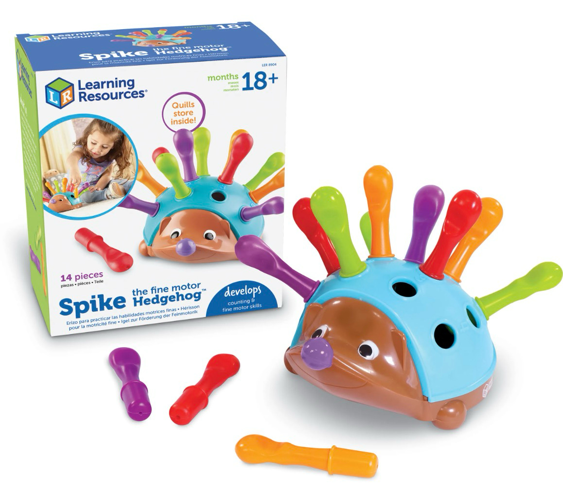 Jordan: A few days ago I purchased for the Schneider household the Spike the Fine Motor Hedgehog as well as Peekaboo Learning Farm — to give my thanks in monetary form to Learning Resources for putting this together.