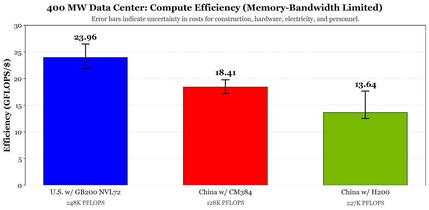 BLUF: The U.S. can build much more cost-efficient data centers compared to China, but unfettered access to the H200 would make the race in raw performance extremely close. Access to the H200 gives China a massive boost considering its domestic hardware production constraints. Lastly, the cost efficiency of these data centers is extremely sensitive to the costs of hardware, which is highly variable and not publicly disclosed.
