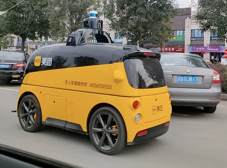 The US, by contrast, doesn’t yet have road-going (as opposed to sidewalk-going) driverless AVs deployed, with companies like Nuro still limited to pilots and R&D fleets. They do have an estimated 3,000 to 5,000 sidewalk AVs, but China has many of these also, and they are a much simpler technology.2