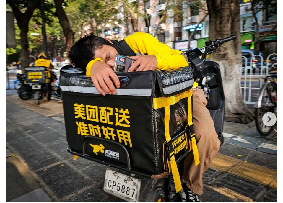 China had 7.48 million certified ride-hailing drivers in 2024, and food-delivery platforms alone support millions more workers. Meituan alone reported 3.36 million average monthly active delivery riders in 2024, many of them relying on these jobs as their primary source of income rather than a side hustle, whereas that number is around 37% of US gig workers. I estimate the Chinese total is something like 13-14 million for food plus ride-hailing services (plus the 38 million truck drivers).