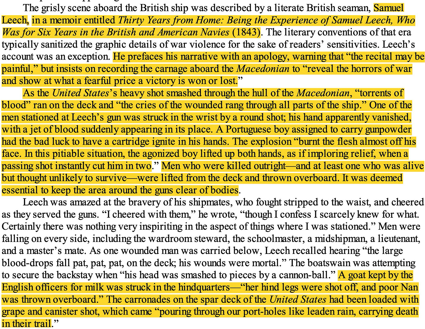 Fighting was very much a skill issue. Boats with fewer guns could, if trained well, fire twice or three times as fast as adversaries. Human capital came into play—empressed Americans weren’t particularly eager to get shots off from the British boats they were forced to sail on.