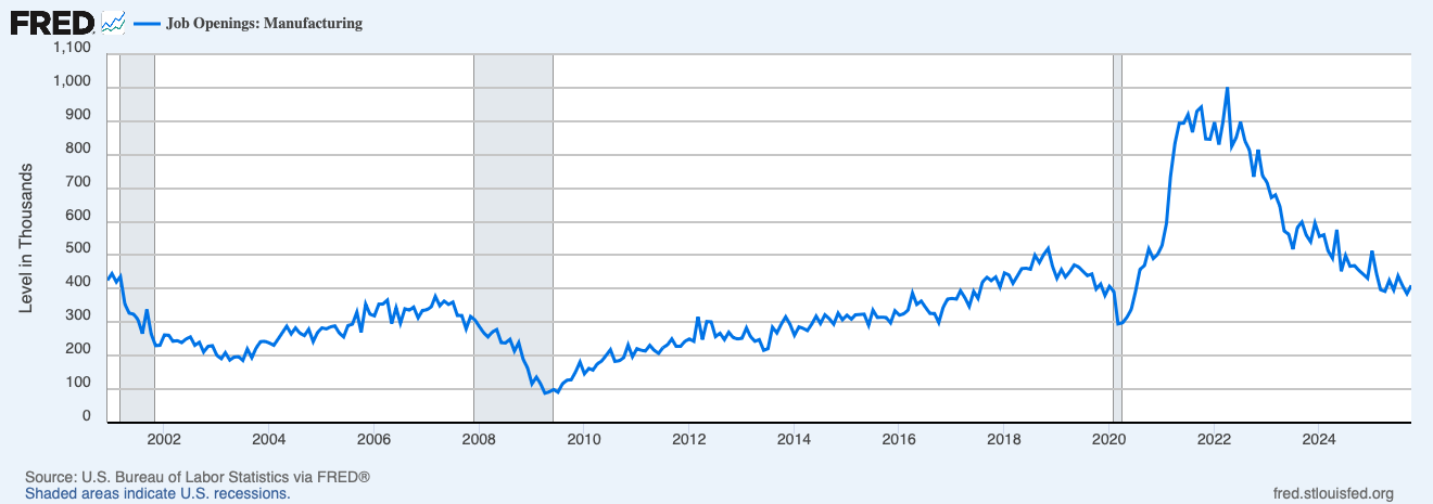 Number two — this went unnoticed, but two weeks ago, the CEO of Ford said he has thousands of empty jobs today paying six figures because people don’t have the skills — mechanics, electricians, etc. These are not in the corporate suite. They’re on the shop floor, and he cannot fill them. He says it’s only going to grow.