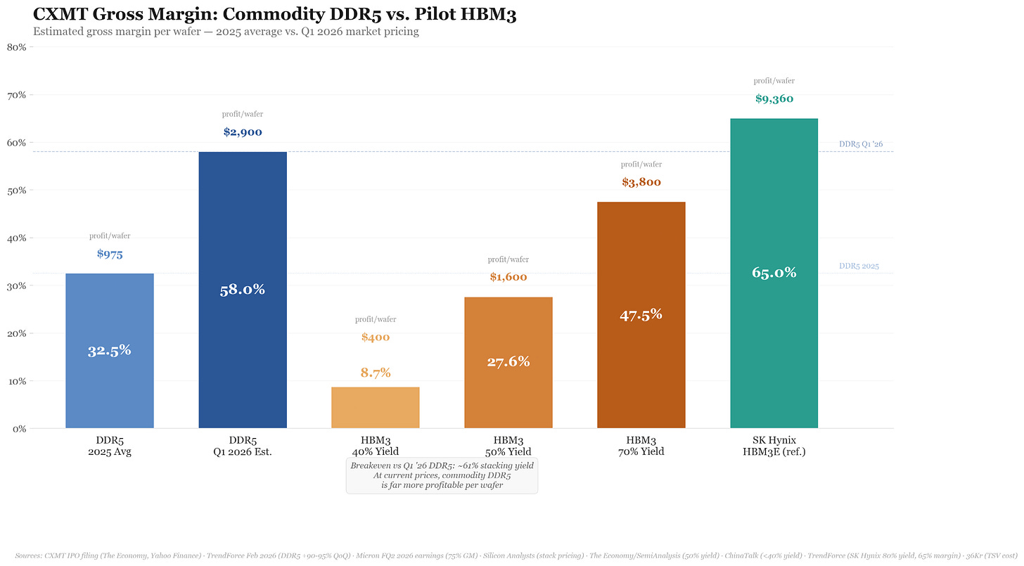 Another line of reasoning suggests that allowing Chinese memory into the American market may actually further our national security interests. By giving CXMT access to a lucrative market for their DRAM, they may be less incentivized to invest in HBM. After all, HBM would be a high-risk venture with certainly low yields (and thus, lower margins) in its early days.