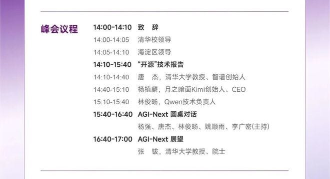 The event included a series of keynotes by Tang Jie 唐杰 (Zhipu’s founder), Yang Zhilin 杨植麟 (CEO of Moonshot AI, which is behind the Kimi models), Lin Junyang 林俊旸 (tech lead for Qwen at Alibaba), and Yao Shunyu 姚顺雨 (current Principal AI Researcher at Tencent, formerly of OpenAI), followed by a panel.
