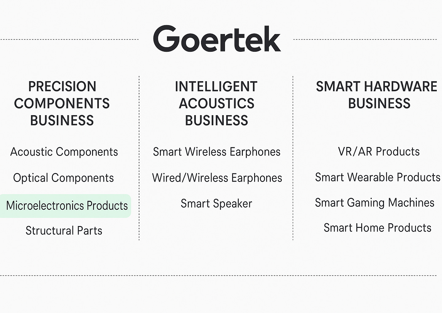 Goertek is highly vertically integrated across a sprawling network of subsidiaries, but its hardware business can be broken up into three buckets: