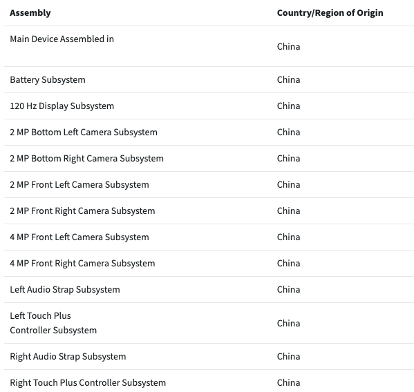 Keep in mind, these figures don’t tell us anything about component volume. US suppliers provide (read: design) high-ticket components like processors,6 but those are a small fraction of the total components needed to make a headset.