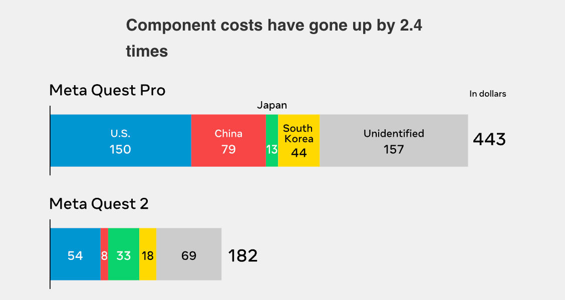 A March 2023 report by Nikkei Asia found that US-made parts accounted for 34% of the component cost for the Meta Quest Pro (the headset between Quest 2 and Quest 3), while Chinese-made components made up 18% of the bill of materials cost.