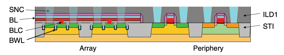 Two of the most difficult steps in DRAM manufacturing are forming the bitline contact (BLC) and storage node contact (SNC). The BLC is the physical connection between periphery transistors that decide what memory needs to be fetched to amplify their signals and the capacitors that actually hold the memory.