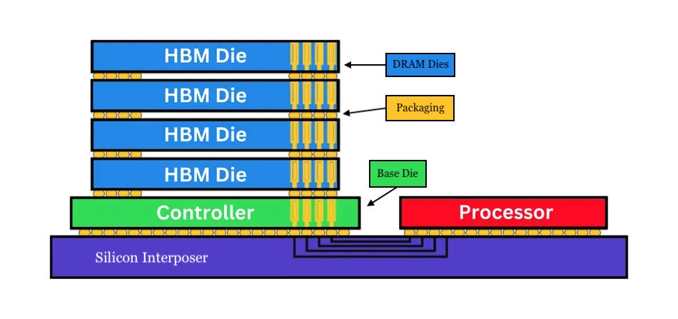 However, the rate of memory chip progression has been slow compared to logic chips. Thus, AI operations are often “memory constrained,” meaning that compute is sitting idle waiting for the memory chip to feed it data on which to perform operations. HBM was created to address this “memory wall” by stacking multiple memory chips on top of each other to boost memory bandwidth. As AI chips continue to get better, HBM remains a critical component for scaling. Simply put, if you care about the AI race and AI chips, then you must care about HBM.