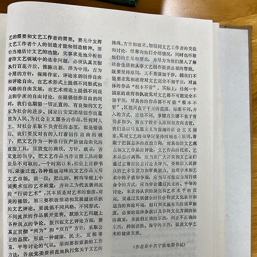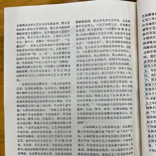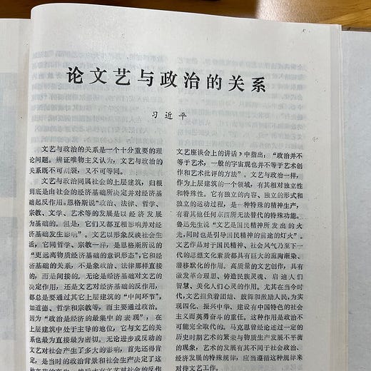 This article also doubles as an informative primer on the PRC leadership’s views on art through the 1980s. Referencing everything from Engels to Mao’s talks at the Yan’an Forum and post-Cultural-Revolution scar literature, Xi lays out a sweeping overview of China's policies on the arts and the artistic movements that developed within the developing nation.
